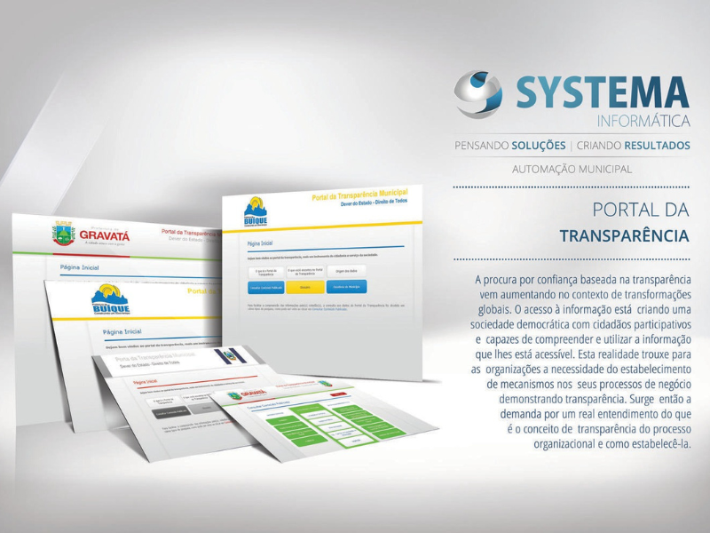 Em um contexto de transformações globais, a procura por confiança baseada na transparência tornou-se essencial para a administração pública. O Portal da Transparência da System Info atende a essa demanda, implementando os preceitos da Lei de Responsabilidade Fiscal (LRF) e da Lei de Acesso à Informação.